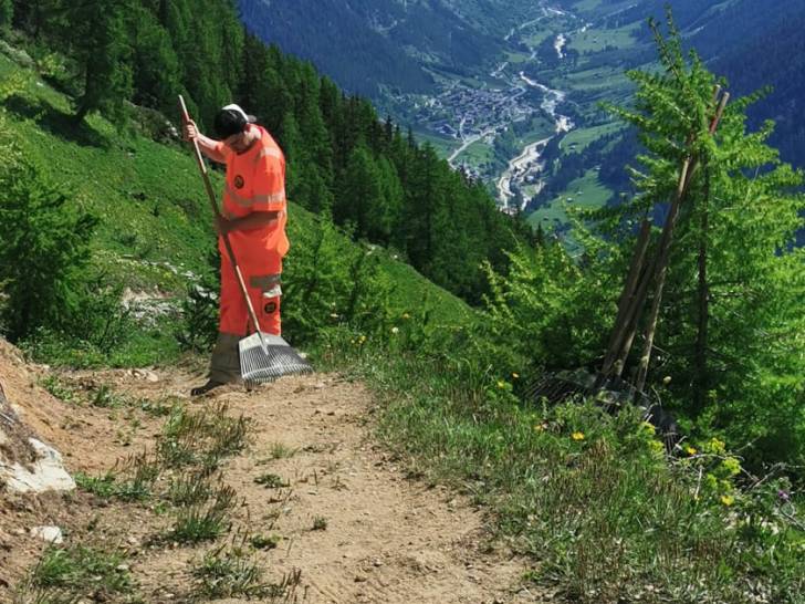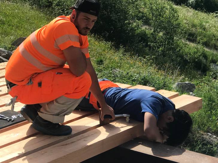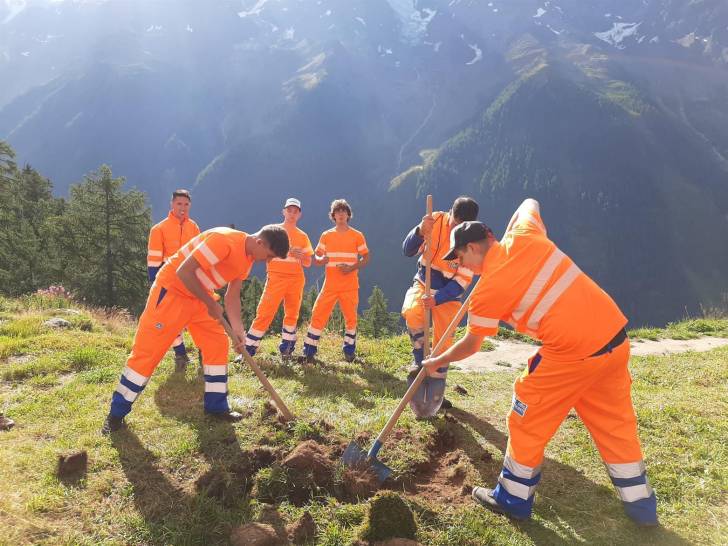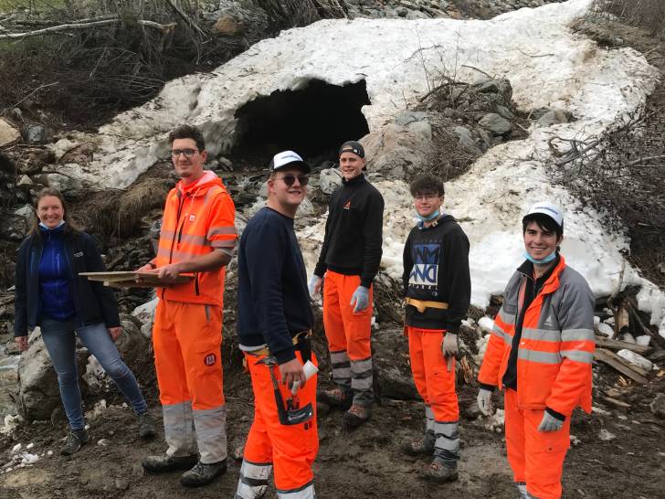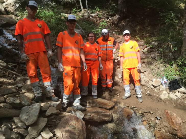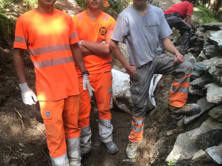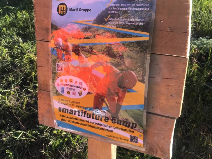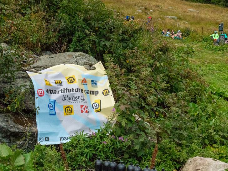 Auch die Wander-Gruppe machte sich kurze Zeit später auf Richtung Zwischenziel. Der Pfad führte durch die schöne Lötschentaler Landschaft bis auf die Tellialp, wo sich Bikende und Wandernde wiedertrafen. Kurz vor dem Ziel gab es auch die wertvolle Arbeit der Marti-Lernenden zu bestaunen; die im martifuture camp angefertigten Suonen. Eine zusätzliche Aufgabe neben dem Ausbauen und Sanieren der Wanderwege und Biketrails.
