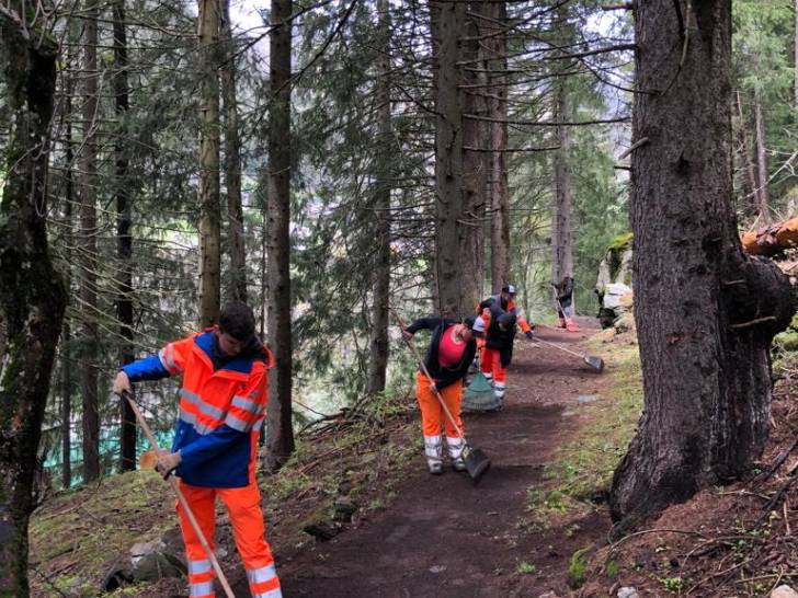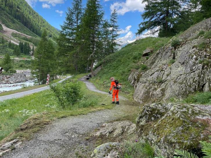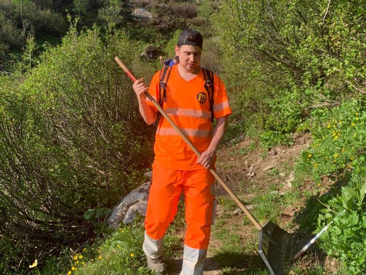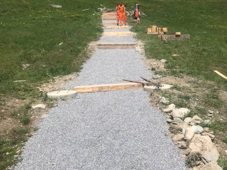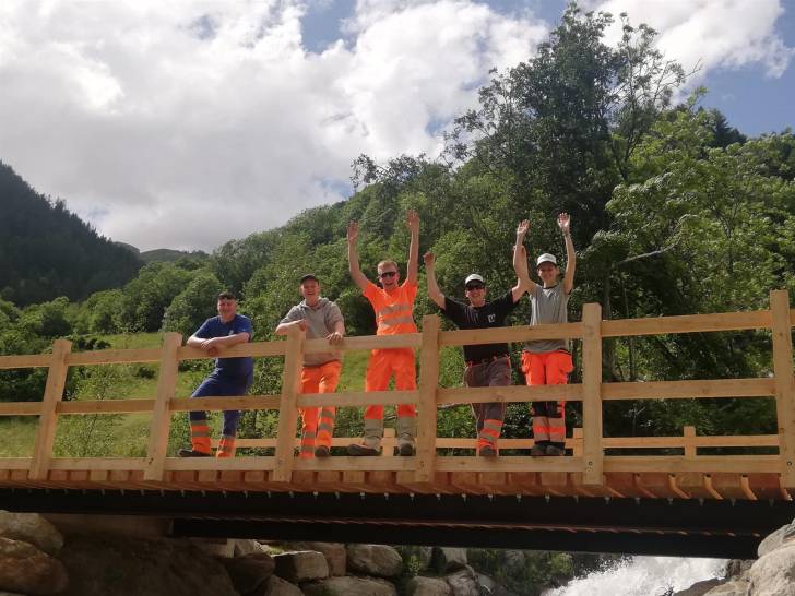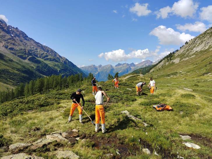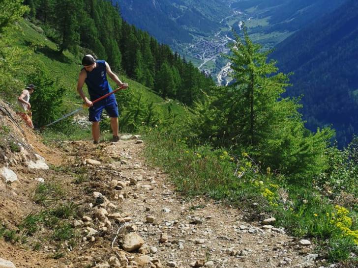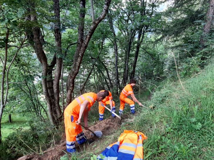 Auch die Wander-Gruppe machte sich kurze Zeit später auf Richtung Zwischenziel. Der Pfad führte durch die schöne Lötschentaler Landschaft bis auf die Tellialp, wo sich Bikende und Wandernde wiedertrafen. Kurz vor dem Ziel gab es auch die wertvolle Arbeit der Marti-Lernenden zu bestaunen; die im martifuture camp angefertigten Suonen. Eine zusätzliche Aufgabe neben dem Ausbauen und Sanieren der Wanderwege und Biketrails.