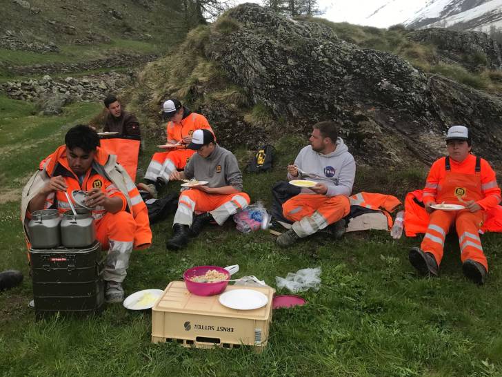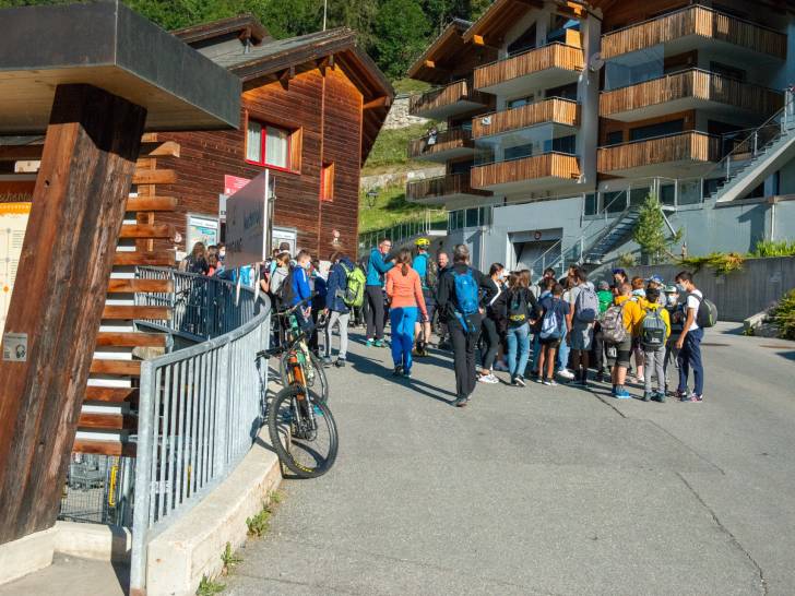 Der krönende Abschluss erfolgte im Tal in Blatten. Mit Raclette auf der Terrasse der Unterkunft des Lernenden-Lagers liessen die Besucher*innen den Tag entspannt ausklingen.