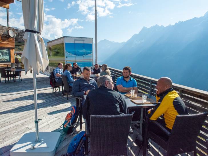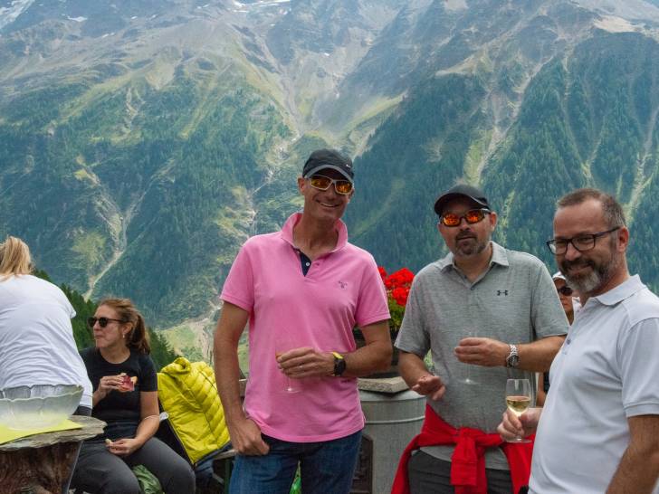 Das Lötschental strahlte in bestem Spätsommerwetter. Gegen neun Uhr trafen die ersten Gäste in Wiler bei der Talstation Lauchernalp ein. Eine gemischte Gruppe aus Jubilar*innen, Pensionierten, ERFA-Mitgliedern, kaufmännischen Leitern und Geschäftsführern. Auch der eine oder andere Lernende war zu sehen. Schnurstraks ging es weiter auf die Seilbahn, um auf der Terrasse des Bergrestaurants mit bester Aussicht Kaffee und Gipfeli zu geniessen.